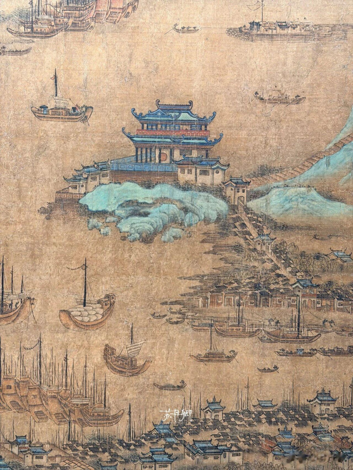 《江汉揽胜图》的作者可能也是这样想的,为了赚钱就将自己的画托在“仇英名下”。但也有可能,此题款是他人所为,非作者本意。不得而知的历史之谜为了这幅画增添了些许神秘色彩,也让人愈发好奇其“真身”。