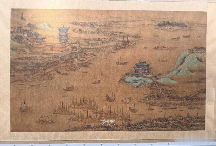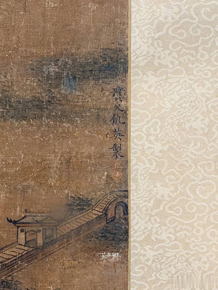 其实,并不是说复制品不好,只是更想目睹真迹,即便看不懂。直到,随着南博涉仇英《江南春画卷》纠纷的各种报道,我才突然想起——我一直想看而看不到的《江汉揽胜图》的画作介绍中,也有“仇英”字样,哪怕是“仇英款”。这是我愈发想见一见《江汉揽胜图》了。